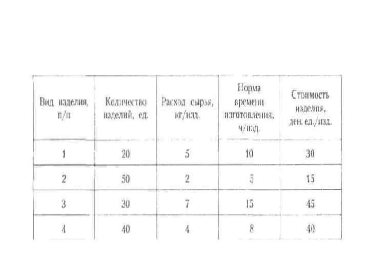 Здесь мы рассмотрим задачи, использующие понятие матрицы. 1. Предприятие выпускает ежесуточно четыре вида изделий, основные производственноэкономические показатели которых приведены в табл. 1