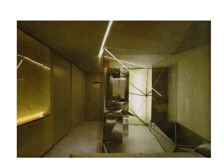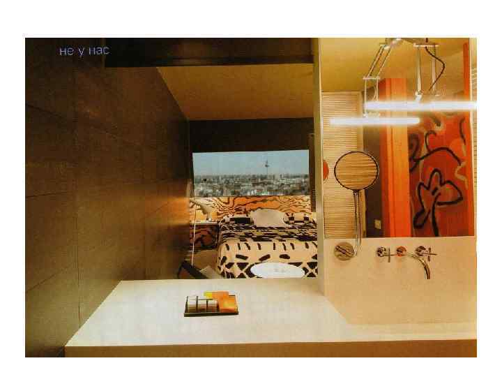 Номер четвёртом этаже на ПОСТРОЕН НА ИГРЕ СВЕТА МЕТАЛЛИЧЕСКИХ ПЛОСКОСТЕЙ, ПРИЧУДЛИВО СОЧЕТАЮЩИХСЯ И СТЫКУЮЩИХСЯ ПОД РЕЗКИМИ УГЛАМИ. В СТЫКИ ВСТРОЕНЫ СВЕТИЛЬНИКИ , ПЕРЕДАЮЩИЕ ЭТОМУ КОСМИЧЕСКОМУ ЧУДУ ФУТУРИЗМА БЕСКОНЕЧНЫЕ ЦЕПОЧКИ ОТРАЖЕНИЙ