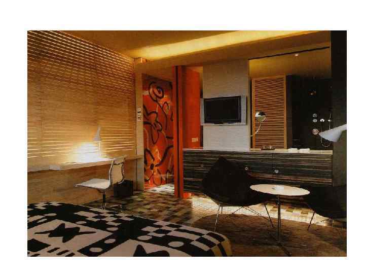 Жан Нувель. Ему доверили Фасад и самый верх. На 12 этаже он оформил 12 номеров. Концепция: «исключительные моменты удовольствия» . Стекляные стены в комнатах покрыты изображениями женщин и цветов. Фотографы играют с образами тела и природы. Приём увеличенной фотографии на стенах и потолке Нувель применяет неоднократно и всегда успешно. Хавьер Марискаль и Фернандо Салас Арато Исодзаки Ричард Глюкман