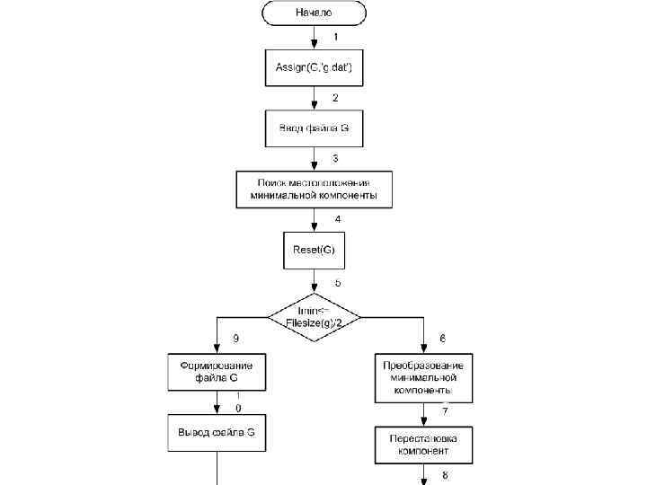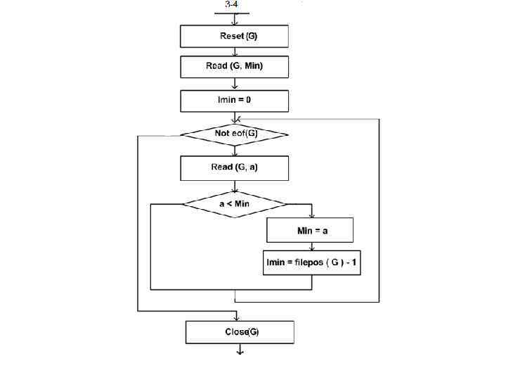 Reset(G); read(G, min); imin: =0; while not eof(G) do begin read(G, a); if a < min then begin min: =a; imin: =filepos(G)-1 end; close(G);