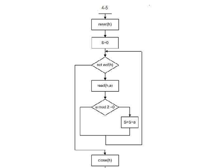 reset(h); s: =0; while not eof(h) do begin read(h, a); if a mod 2=0 then s: =s+a; end; close(h);