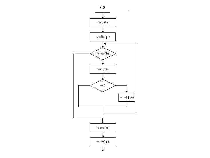 else begin reset(h); rewrite(g); while not eof(h) do begin read(h, a); if a>0 then write(g, a); end; close(h); close(g);