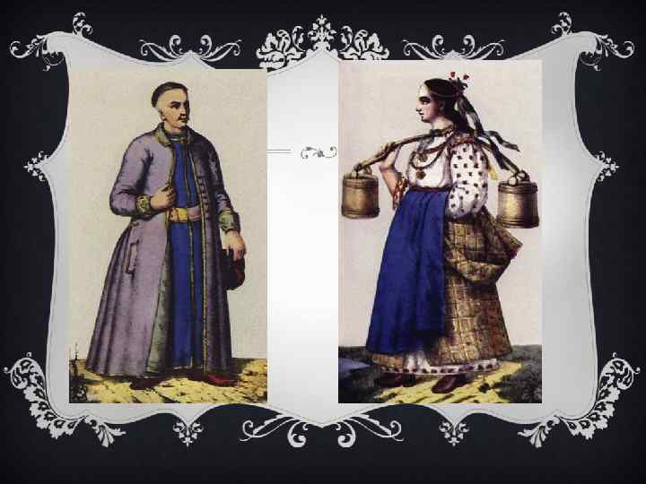 СВІТ МОДИ У ПРОСТИХ СЕЛЯН v Зміни, що розпочалися в усіх сферах життя європейців, охопили і світ одягу. Поширилося правило не просто одягатися, а слідувати моді, змінюючи щорічно фасони суконь і камзолів. А втім, вир моди захопив не всіх. Одяг бідняків і селян залишався незмінним. Ігнорування моди — сумна традиція бідноти, хоч би де і коли вона жила. Селяни мали один незмінний робочий одяг і святкове вбрання, що переходило від батьків до дітей.