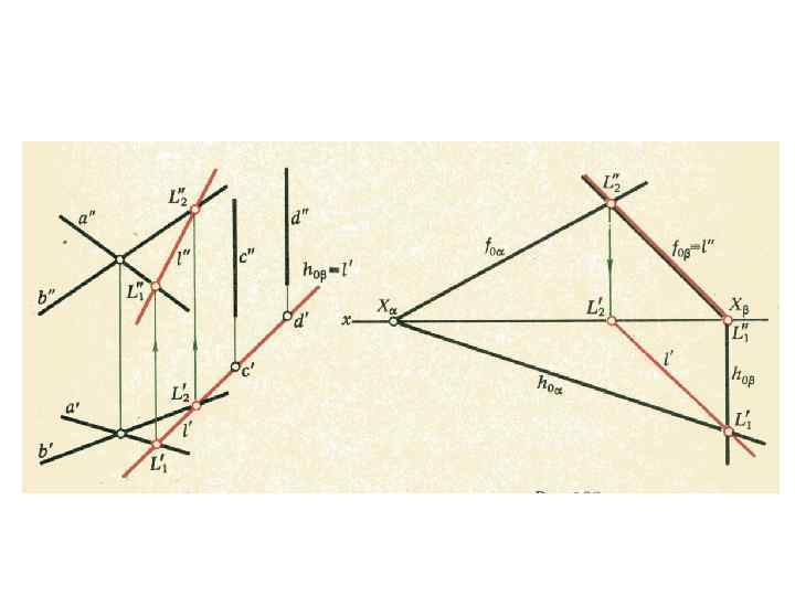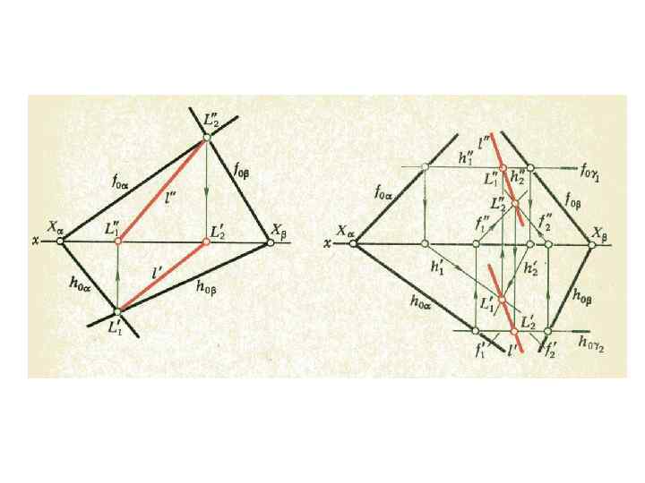 2 г. Если фигура Ф принадлежит плоскости, перпендикулярной плоскости П 1, то ортогональная проекция этой фигуры принадлежит линии пересечения плоскости с плоскостью П 1 –горизонтальному следу h 0 плоскости