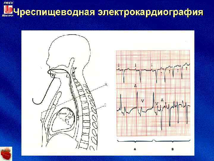 Дополнительные ЭКГотведения -4 n Пищеводное отведение (применяют для диагностики нарушений ритма сердца, плохо идентифицируемых на ЭКГ в общепринятых отведениях, когда плохо визуализируется зубец P)
