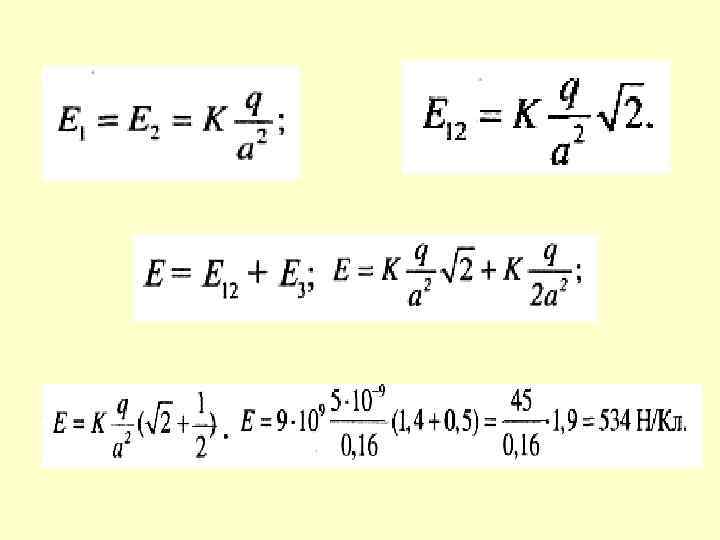 Ступень сложности 3 В трех вершинах квадрата со стороной 0, 4 м находятся одинаковые положительные заряды по 5 • 10 -9 Кл каждый. Найти напряженность поля в четвертой вершине.