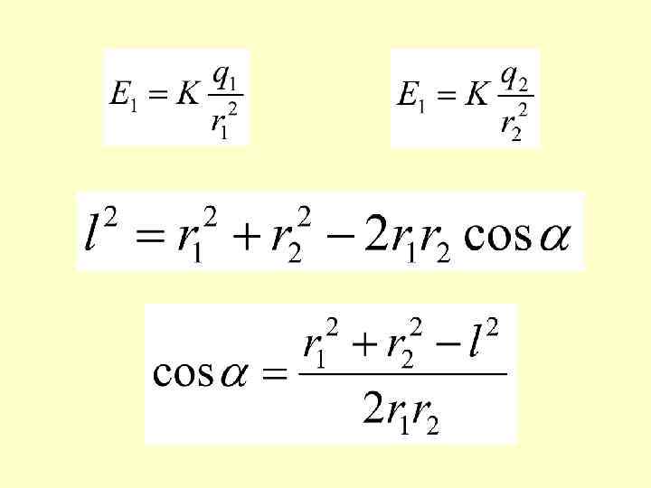 Самостоятельная работа 1) Между двумя точечными зарядами 4 • 10 -9 Кл и 5 • 10 -9 Кл расстояние равно 0, 6 м. Найти напряженность поля в средней точке между зарядами. 2) Найдите напряженность результирующего поля в точках А и Е, удаленных от зарядов на 0, 3 м. Сделайте рисунок, на котором укажите систему отсчета и вектора напряженности. Д/З: § 36 -39 – выучить формулы, подготовка к тесту на знание формул