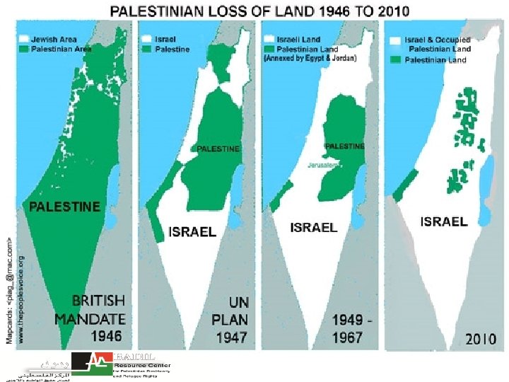 Principales Oleadas de Desplazamiento • Mandato Británico (1922 -1947) • 150. 000 desplazados dentro de y más allá de las fronteras de Palestina. • Nakba = Catástrofe (1948) • Más de 500 aldeas palestinas fueron despobladas y destruidas • 750. 000 refugiados palestinos fueron desplazados más allá de las fronteras del nuevo estado a Cisjordania, a la Franja de Gaza, Jordania, Líbano, Siria, Irak y muchos otros países • 130. 000 permanecieron en lo que es ahora el estado de Israel; 40. 000 fueron PDIs (Personas Desplazadas Internamente) • 85% de la población palestina fue desplazada • Naksa (1967) • 450. 000 (un tercio de la población de los territorios ocupados)