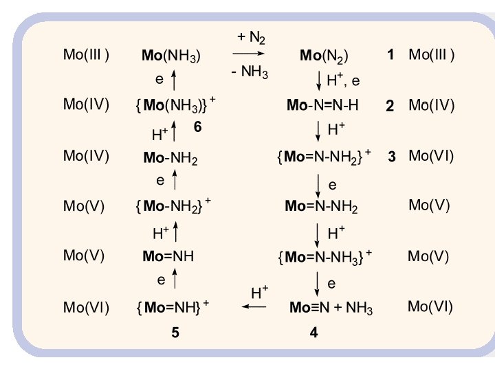 Nitrogenase - The P Cluster reduced state oxidized state bridging 6 -coord. S bridging