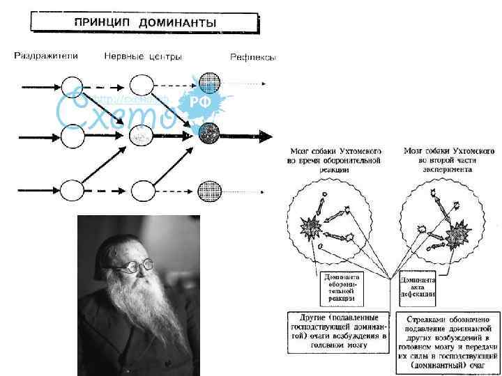 Принцип доминанты • В каждый данный момент жизни возникает определяющий (доминантный) очаг возбуждения, подчиняющий себе деятельность всей нервной системы и определяющий характер приспособительной реакции. • создаются условия для формирования определенной реакции организма на раздражитель, имеющий наибольшее биологическое значение, т. е. удовлетворяющий жизненно важную потребность. • В естественных условиях существования доминирующее возбуждение может охватывать целые системы рефлексов, в результате возникает пищевая, оборонительная, половая и другие формы деятельности.