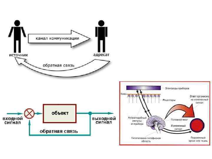 Принцип обратной связи • Обратная связь позволяет соотнести выраженность изменений параметров системы с ее работой. • Связь выхода системы с ее входом с + коэффициентом усиления называется положительной обратной связью, а с коэффициентом – отрицательной обратной связью. Положительная обратная связь в основном характерна для патологических ситуаций. • Отрицательная обратная связь обеспечивает устойчивость системы (ее способность возвращаться к исходному состоянию после прекращения влияния возмущающих факторов)