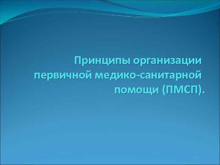 Принципы организации первичной медико-санитарной помощи (ПМСП).