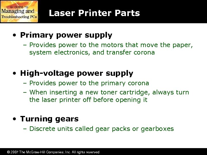 Laser Printer Components © 2007 The Mc. Graw-Hill Companies, Inc. All rights reserved