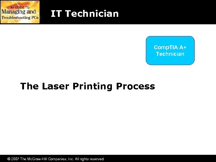 IT Technician Comp. TIA A+ Technician The Laser Printing Process © 2007 The Mc. Graw-Hill Companies, Inc. All rights reserved