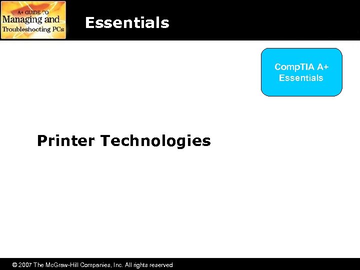 Essentials Comp. TIA A+ Essentials Getting the Right Sound Card Printer Technologies © 2007 The Mc. Graw-Hill Companies, Inc. All rights reserved