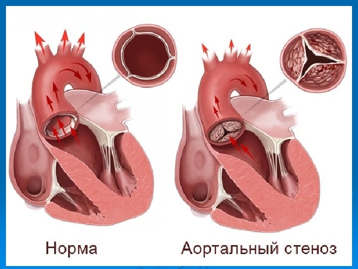 Аортальный стеноз Встречается в 20 -23 % случаев среди умерших от приобретенных пороков клапанов сердца. Ø Он более типичен для лиц молодого и среднего возраста и встречается чаще у мужчин, чем у женщин (2, 4: 1). Ø Сужение аортального клапана препятствует опорожнению левого желудочка, что вызывает включение компенсаторных механизмов в виде удлинении систолы левого желудочка и повышения в нем давления. Градиент давления «аорта-левый желудочек» может достигать 50 -150 мм рт. ст. , что способствует быстрому развитию значительной гипертрофии левого желудочка, обычно без увеличения его полости в ранних стадиях развития порока. Ø