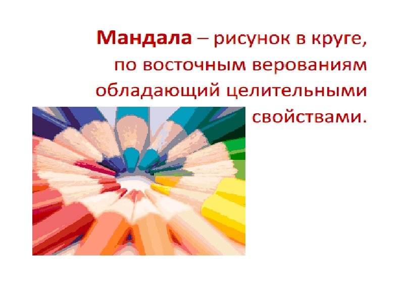 Мандалотерапия Одно из направлений арт-терапии (исцеление искусством).