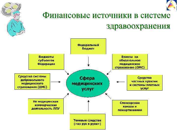 üОсновная проблема здравоохранения – обеспечение доступности, равнодоступности и качества медицинской помощи – связана с разделением системы здравоохранения по имущественному признаку на федеральное, субъектовое и муниципальное. При этом финансовые возможности как субъектов, так и муниципальных образований значительно отличаются, поэтому равнодоступность медицинской помощи остается лишь благим пожеланием. üПроблема доступности медицинской помощи также еще далека от решения, и не только по причине недостаточного финансирования. Проблема состоит в том, что до сих пор не предложена эффективная организация финансирования здравоохранения. Устоявшаяся практика финансирования по сметным принципам, построенная на нормативном методе, при которой государство дает, что может, а остальное в скрытой или явной форме доплачивает население, представляет собой самую дешевую практику финансирования, которая устраивает многих в профессиональном медицинском сообществе.