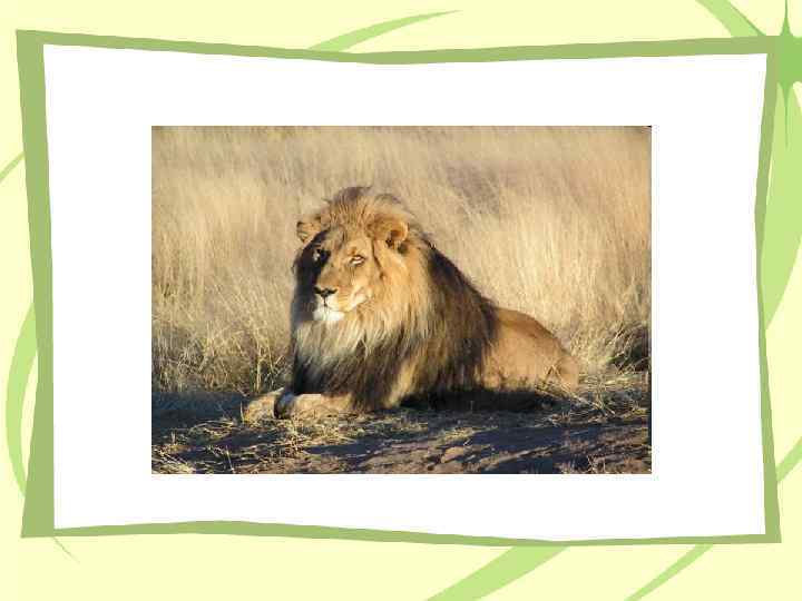 Лев – самый крупный хищник Африки Крупный хищник, словно состоящий из одних мышц. Окрас шерсти сверху от песочного до рыжевато-коричневого, снизу почти белый. Лев средних размеров весит около 190 кг. (175– 220), максимально рекордный вес – 270 кг. Длина тела льва до 3, 3 метра, львицы до 2, 7 метра. Львы прекрасно приспособлены к жизни сухих областях, могут не пить месяцами, довольствуясь содержащейся в пище влагой.