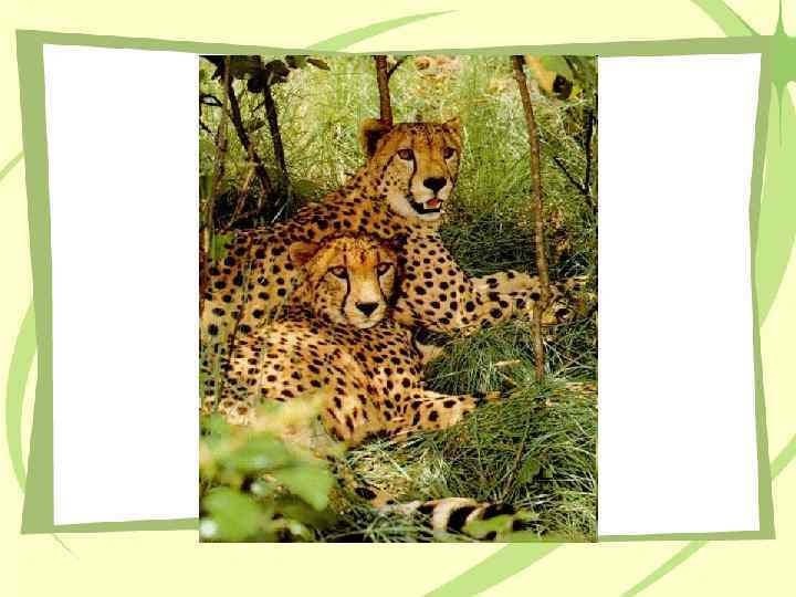 Гепард и леопард • Из других хищников саванны следует упомянуть леопарда и гепарда. Эти внешне несколько похожие, но совершенно разные по образу жизни крупные кошки сейчас стали довольно редки. Главную добычу гепарда составляют газели, леопард же более универсальный охотник: помимо мелких антилоп он успешно добывает африканских диких свиней — бородавочников и особенно павианов. Когда в Африке истребили почти всех леопардов, павианы и бородавочники, размножившись, стали настоящим бедствием для посевов. Леопардов пришлось взять под охрану.
