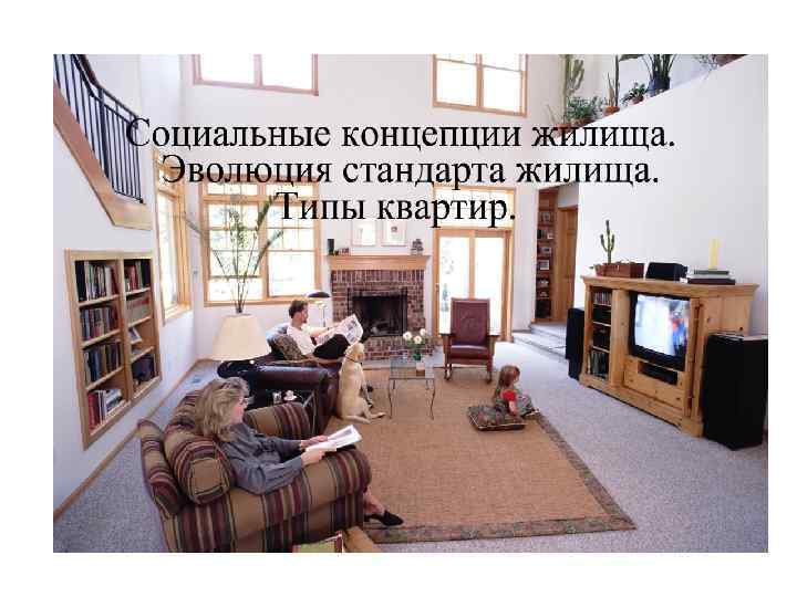 Основные факторы, влияющие на тип и форму жилья • природно климатические особенности (ландшафт, температура, ветер, осадки, пылевые бури и пр. ); • региональные особенности (национальные обычаи, традиции, нравы); • • • строительные материалы; политические и общественные условия; технический прогресс; величина населенного пункта; социальная структура населения.