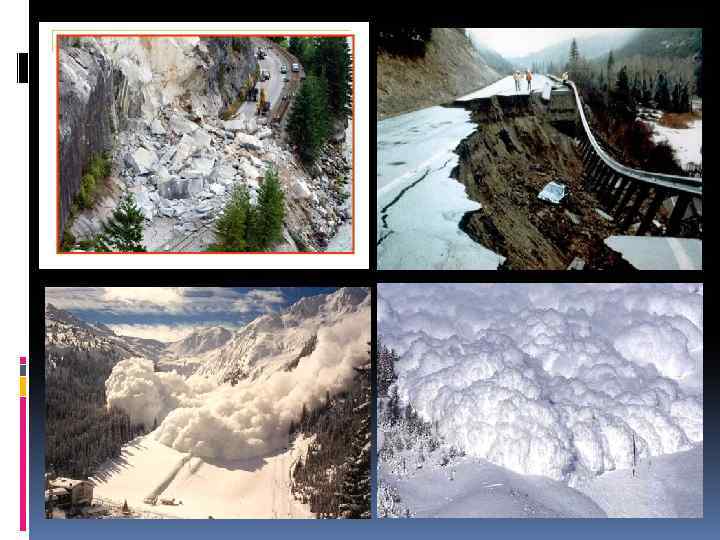 Ø геологического характера (оползни, сели, лавины, провалы земной поверхности в результате карста, эрозия, пыльные бури);