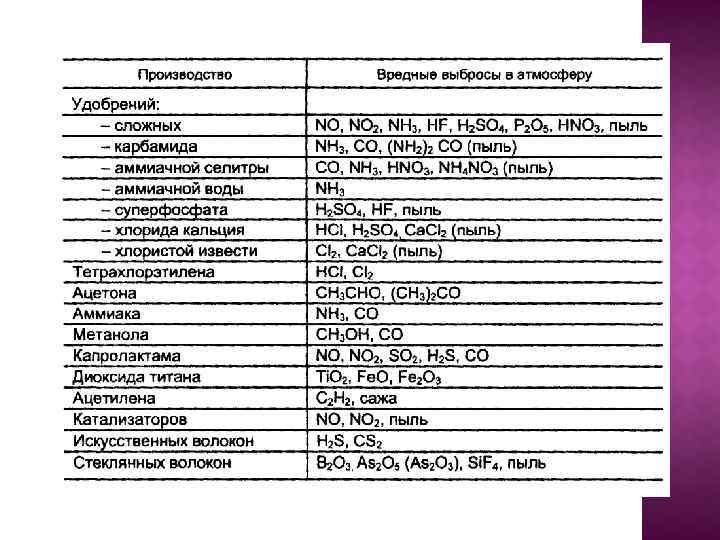 Природные: КЛАССИФИКАЦИЯ ЗАГРЯЗНИТЕЛЕЙ ПО УСЛОВИЯМ ОБРАЗОВАНИЯ И ПО ПРИРОДЕ • выветривание почвы; • лесные и степные пожары • вулканическая деятельность; • сгорание метеоритов. Загрязнители атмосферы Физические • радиоактивные элементы • тепловое излучение • шум • электромагнитное излучение Антропогенные • добыча полезных ископаемых • сгорание топлива (производство энергии) • промышленное производство • сельскохозяйственное производство • коммунальное хозяйство городов транспорт Химические • оксиды углерода (СО, СО 2); • производные серы (SO 2, H 2 S, SO 3); • производные азота (NO, NO 2, NH 3); • тяжелые металлы (Pb, Сd, Hg); • соединения фтора (фреоны) • пестициды • твердые примеси • углеводороды