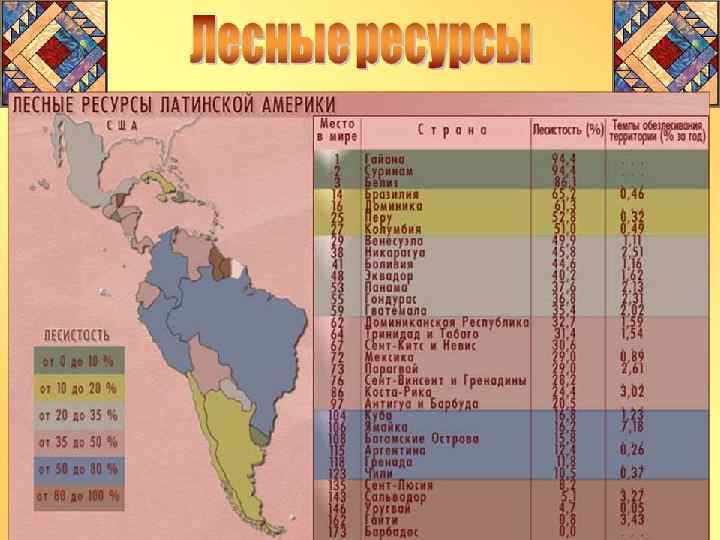 Вывод : • Латинская Америка обеспечена лесными ресурсами. Лесная промышленность ориентируется на собственные резервы.