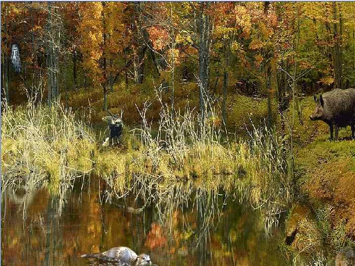 Животный мир: l В смешанных и широколиственных много укрытий, разнообразный и достаточно обильный корм. Это позволяет животным круглый год оставаться в лесах. Перелетных птиц здесь значительно меньше , чем в тундре. Для лесов характерно ярусное распределение животных. Здесь распространены животные: белки, лесная куница , хорь , бурый медведь, лисы, лось, летучие мыши, дятлы, совы.