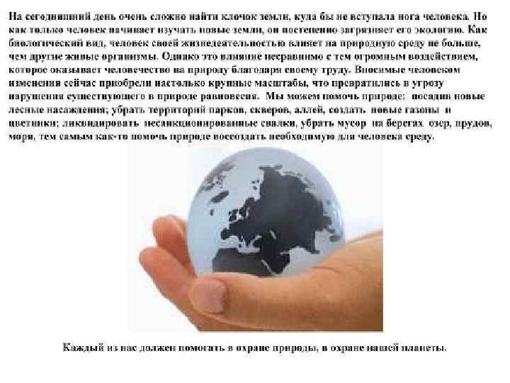 Система «железных законов» охраны природы по Полу Эрлиху • По мнению Пола Эрлиха, законы охраны природы можно свести к таким положениям: 1. В охране природы возможны только успешная оборона или отступление. Наступление невозможно: вид или экосистема, однажды уничтоженные, не могут быть восстановлены. 2. Продолжающийся рост народонаселения и охрана природы принципиально противоречат другу. 3. Экономическая система, охваченная манией роста, и охрана природы также принципиально противостоят другу. 4. Не только для всех других организмов, но и для человечества смертельно опасно представление о том, что при выработке решений об использовании Земли надо принимать во внимание одни лишь ближайшие цели и немедленное благо Homo sapiens.