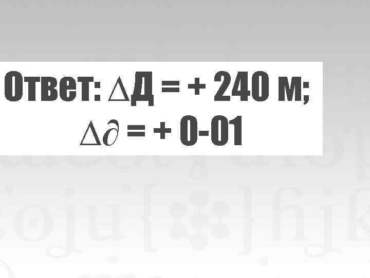 Ответ: ∆Д = + 240 м; ∆∂ = + 0 -01