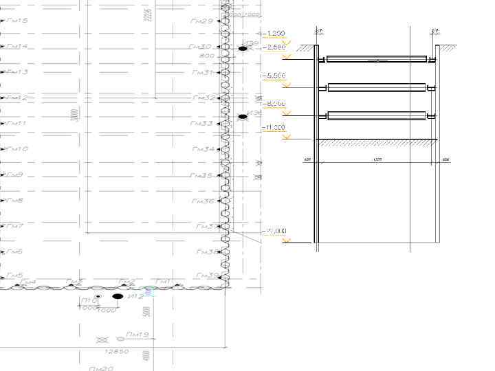 Схема работы гибкой раскрепленной стенки