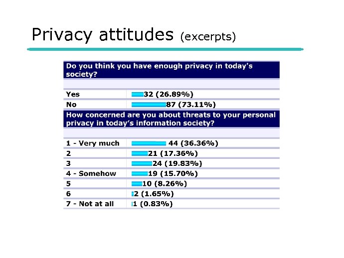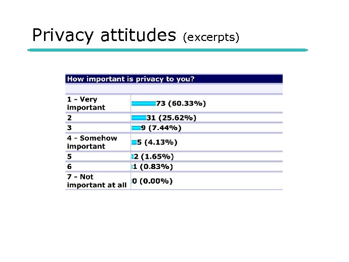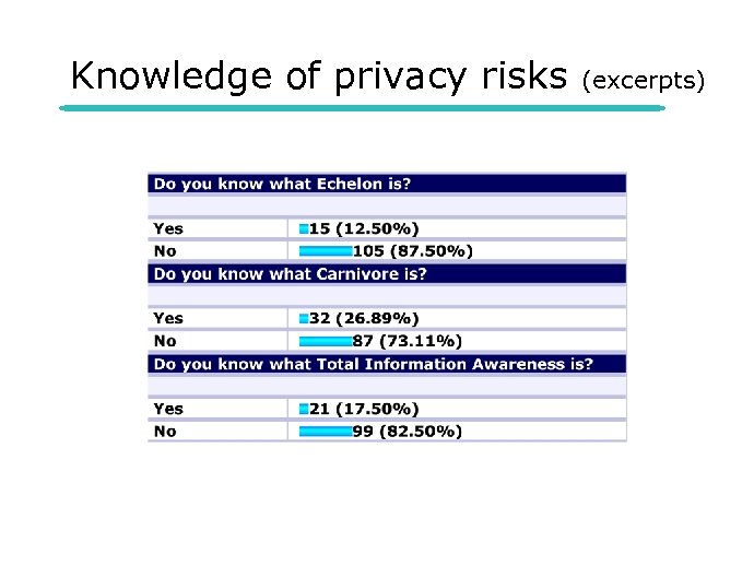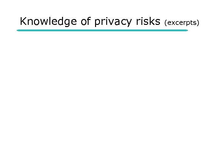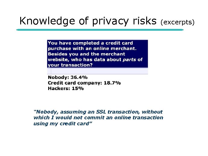Knowledge of privacy risks (excerpts) “Nobody, assuming an SSL transaction, without which I would not commit an online transaction using my credit card”