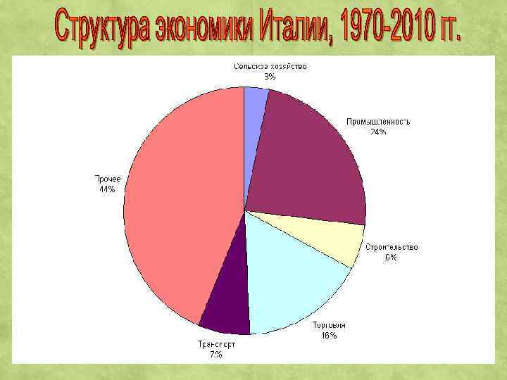 Со второй половины 80 -х годов экономика постепенно начала возвращать утраченные позиции. Италия становится развитой индустриальной державой, занимающей пятое место в капиталистическом мире по производству ВВП. Италия, в экономике которой действует свыше 1200 фирм с участием иностранных инвесторов, сама экспортирует собственные капиталы за рубеж. Передовыми отраслями её экономики остаются машиностроение (4 -е место в капиталистическом мире по выпуску различных станков) и автомобилестроение (бесспорный лидер – высокотехнологичныйконцерн ФИАТ). Быстрый рост индустрии туризма стимулирует развитие строительства и пищевой промышленности, обеспечивает рост занятости населения в этой перспективной сфере.