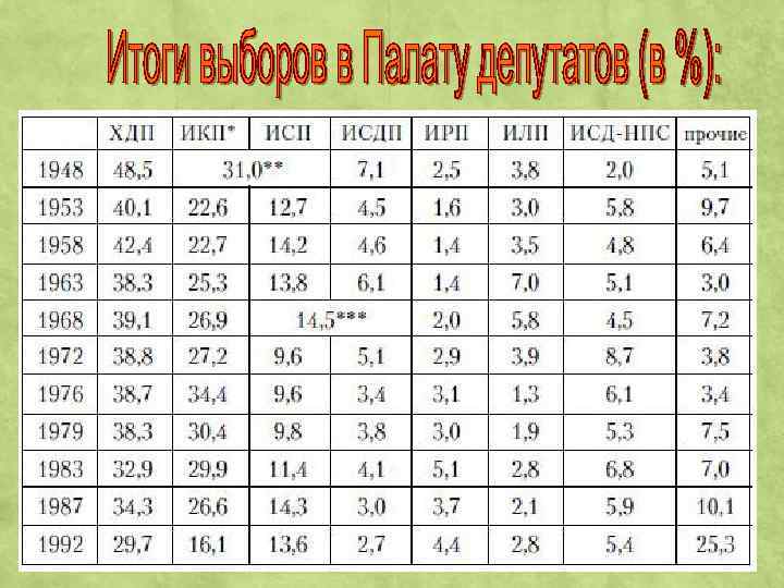 Особенности неоконсервативного поворота в Италии консервативный сдвиг вправо первой половины 80 -х гг. в Италии происходил в условиях большей, по сравнению с другими странами активности левых сил консервативный поворот отличался от других стран меньшими масштабами приватизации сохранением высокого удельного веса и лидирующих позиций госсектора проходил в условиях массовых митингов и при активной деятельности террористических групп, мафии частая смена правительств. К 1993 г. Насчитывалось 52 послевоенных правительства. политика неоконсерватизма осуществлялась не одной партией в правительстве, а коалицией пяти партий