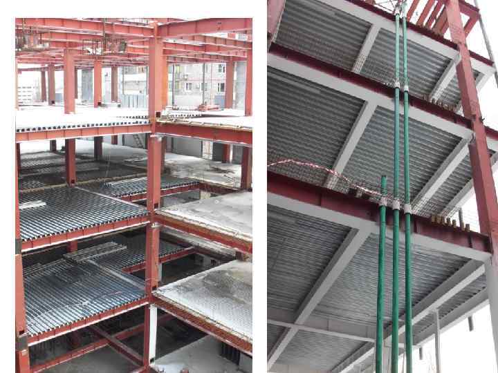 Перекрытия по ж/б балкам • Балочные ж/б перекрытия состоят из балок таврового сечения и прямоугольного • Заполнителем служит накат из гипсобетонных плит или лёгкого бетона.