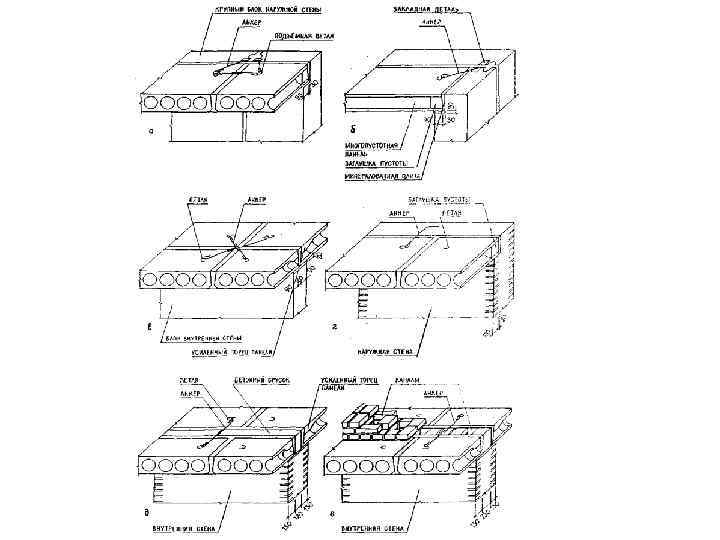 Сборные перекрытия • Железобетонные монолитные перекрытия любого типа наряду с большой трудоемкостью изготовления на стройплощадке, значительным расходом древесины обладают и тем недостатком, что бетонирование, являясь мокрым процессом, задерживает сроки строительства. Поэтому стараются изготовить конструктивные части перекрытий заранее в заводских условиях. Из этих сборных элементов затем монтируют перекрытие. Элементы заводского изготовления, ускоряя сроки строительства, имеют еще и другое преимущество: перекрытия, смонтированные из них, можно сразу же нагружать. Применение готовых элементов позволяет производить работы зимой. Недостаток состоит в затруднении транспортирования элементов и возможности их повреждения во время монтажа. Верхняя часть сборных перекрытий, уложенных на кирпичные стены, аналогична применяемой для монолитных перекрытий, следовательно, они закреплены в поясах кирпичной кладки, которые после монтажа бетонируют по всему периметру.