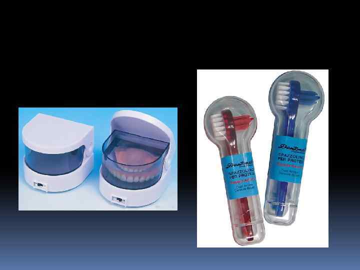 СРЕДСТВА ПО УХОДУ ЗА ПРОТЕЗОМ Чаще всего при использовании съемным протезом нарушаются: -самоочищение полости рта -терморегуляция -микроциркуляция слизистой