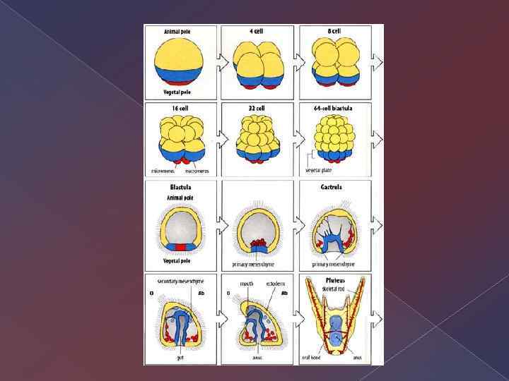 Гаструла При подальшому розвитку із зародкових листків формуються всі тканини і органи. На місці вгинання утворюється первинний рот, який веде в замкнену порожнину первинної кишки. У деяких безхребетних тіло до кінця життя має два шари, зберігається первинний рот та порожнина первинної кишки, наприклад, кишковопорожнинні.