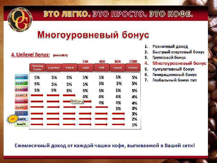 ПЛАН ВОЗНАГРАЖДЕНИЙ ORGANO GOLD 7 ВИДОВ ДОХОДА