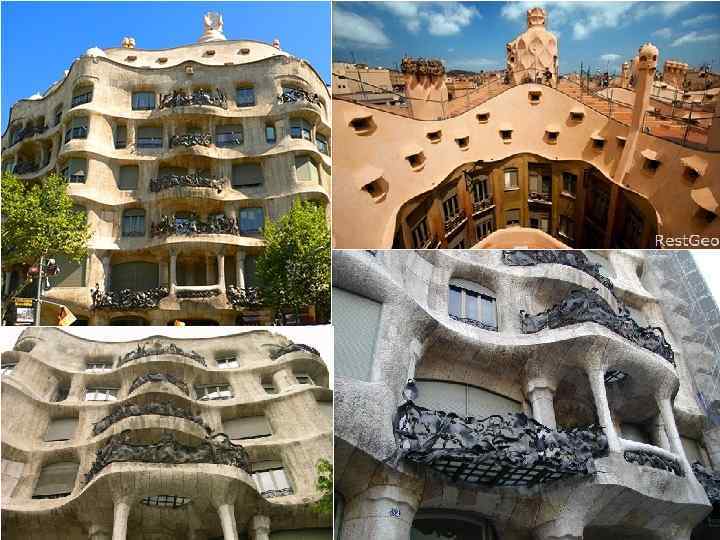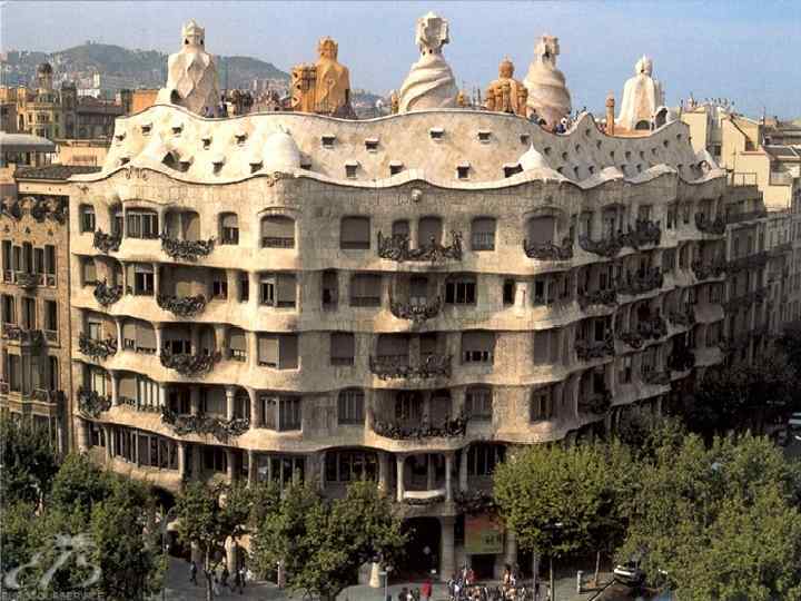 Будинок Міла (1905— 1907 р. р. ) • Цей будинок часто називають «Педрерою» кам'яною печерою. Ґауді тут досяг сюрреалістичної атмосфери, з хвилястим фасадом, криволінійними формами та ексцентричними димарями-дзвонами. Сам Ґауді про цей будинок казав: «Його форми перегукуються з контурами гір, які оточують Барселону та їх можна побачити з даху цього будинку. »