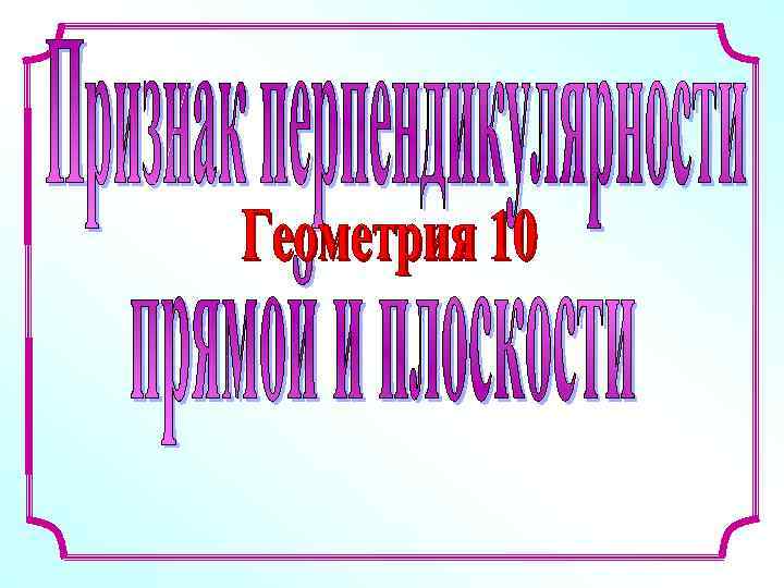 Признак перпендикулярности прямой и плоскости. Если прямая перпендикулярна к двум пересекающимся прямым, лежащим в плоскости, то она перпендикулярна к этой плоскости. p a p, a p q q a q, a