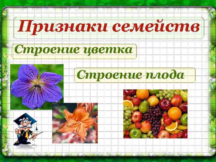 Признаки семейств Строение цветка Строение плода