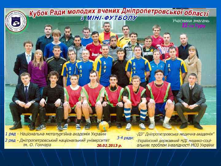 Лауреати державних стипендій за 2010 -2014 рр. Стипендія Кабінету Міністрів України для молодих вчених Дегтярьов Володимир Сергійович, к. т. н. , доцент кафедри обробки металів тиском, 2009 -2011 рр. Левко Олена Миколаївна, к. т. н. , доцент кафедри ПМ і ЗМ, 2010 -2012 рр. Гордєєва Інна Олександрівна, к. т. н. , доцент кафедри управління проектами, 2012 -2013 рр. Верховська Аліна Олександрівна, к. т. н. , доцент кафедри автоматизації виробничих процесів, з 2014 р. Академічна стипендія Президента України для аспірантів Стогній Юлія Дмитрівна, аспірант кафедри теорії металургійних процесів і фізичної хімії, 2009 -2010 рр. Калініна Наталія Юріївна, аспірант кафедри інформаційних технологій і систем, 2010 -2011 рр. Академічна стипендія ім. М. С. Грушевського для аспірантів Сокур Юлія Іванівна, аспірант кафедри теорії металургійних процесів і загальної хімії, 2013 -2014 рр. Академічна стипендія Кабінету Міністрів України для аспірантів Міщенко Олексій Васильович, аспірант кафедри обробки металів тиском, 2014 -2015 рр.