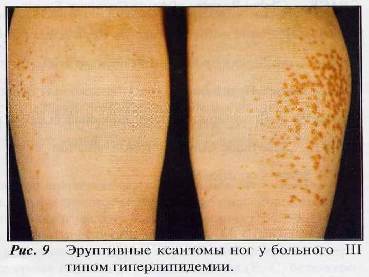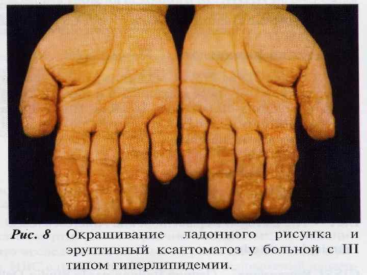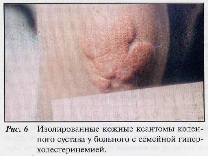 в)эруптивные и туберозные ксантомы – желтоватые подкожные отложения ХС