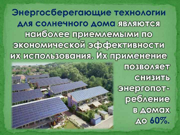 В качестве примера успешного применения этих технологий можно отметить проект « 2000 солнечных крыш» в Германии. В США солнечные водонагреватели общей мощностью 1400 МВт установлены в 1, 5 млн. домов.