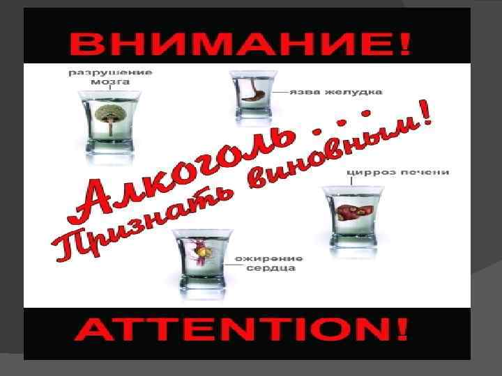 Последствия алкоголизма Для пьющего: Утрата самоконтроля Агрессивность Несчастные случаи Отравление алкоголем Тяжелые заболевания внутренних органов Потеря трудоспособности Ранняя смерть Самоубийство Для семьи: Конфликты в семье Потеря уважения Материальные трудности Для общества: Нарушения общественного порядка Дорожно-транспорные происшествия Прогулы в школе, институтах