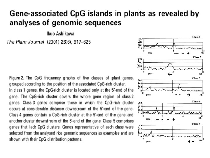 Для выделения Cp. G-островов у растений необходим пересчёт параметров для типичного для них %GC и отношения Cp. G/Gp. C. Важно использовать также критерий консерватизма выделяемых островов у разных видов. В работе Ashikawa это было сделано удачно. В цитируемой ниже работе из-за отсутствия подобного подхода получены лишь общие оценки.