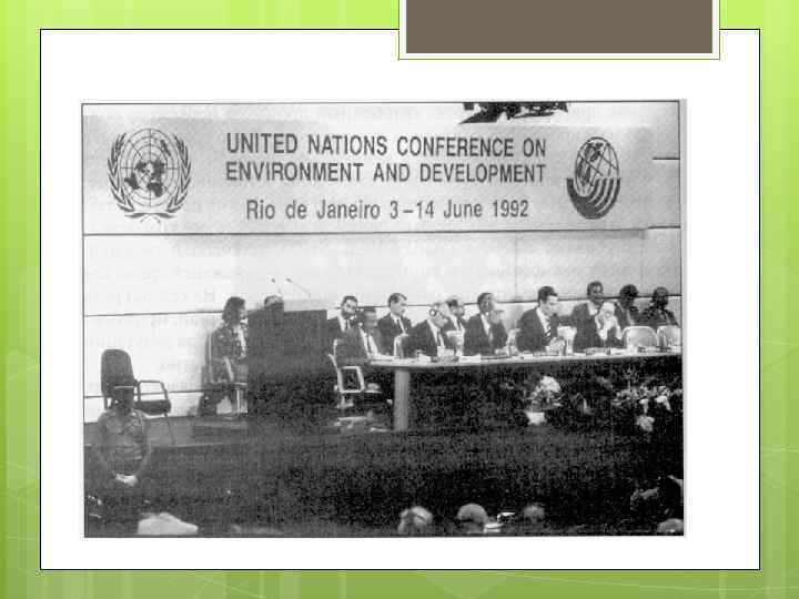 1. 3. Роль конференції ООН в Ріо-де. Жанейро (1992) та основні її положення щодо сталого розвитку. Потужний імпульс для утвердження ідеї сталого розвитку дала представницька конференція ООН з проблем довкілля та розвитку в Ріо-де-Жанейро (1992 р. ), яку ще називають «самітом Землі» , або «самітом у Ріо» . Найбільшим досягненням цієї конференції був сам процес визнання того факту, що проблеми навколишнього природного середовища і проблеми розвитку більше не можуть розглядатися окремо одна від одної. На конференції були продемонстровані усі аспекти глобальної та регіональної екології, незалежно від рівня економічного розвитку (глобального потепління клімату, посилення тиску зростаючої чисельності населення на природу, проблеми бідності тощо). Керівники 179 країн — членів ООН (Україну на цьому саміті представляв на той час голова Верховної Ради України І. Плющ) закликали уряди усіх країн світу й усіх жителів планети до запровадження принципів екологічно безпечного розвитку у сфері економічної, екологічної та соціальної політики
