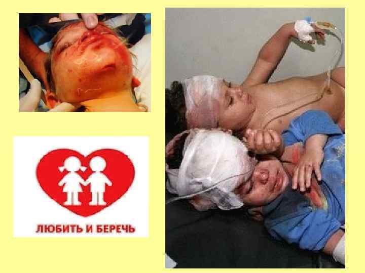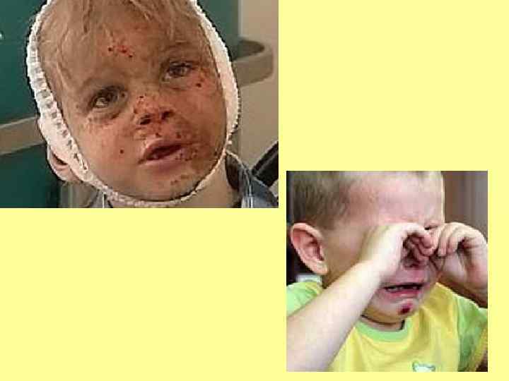 Распознание факта физического насилия над ребенком Характер повреждений: синяки, ссадины, раны, следы от ударов ремнем, укусов, прижигания горячими предметами, сигаретами, располагающиеся на лице, теле, конечностях; ожоги горячими жидкостями кистей и ног в виде перчатки или носка (от погружения в горячую воду), а также на ягодицах; повреждения и переломы костей, припухлость и болезненность суставов; выбитые и расшатанные зубы, разрывы или порезы во рту, на губах; участки облысения, кровоподтеки на голове; повреждения внутренних органов.